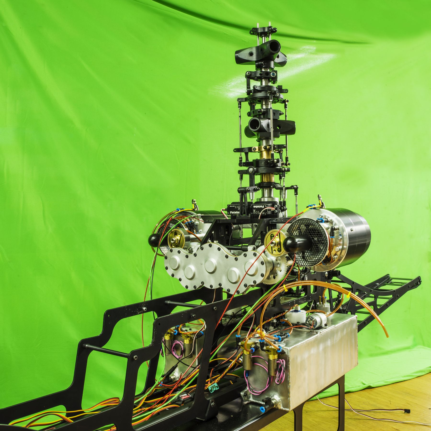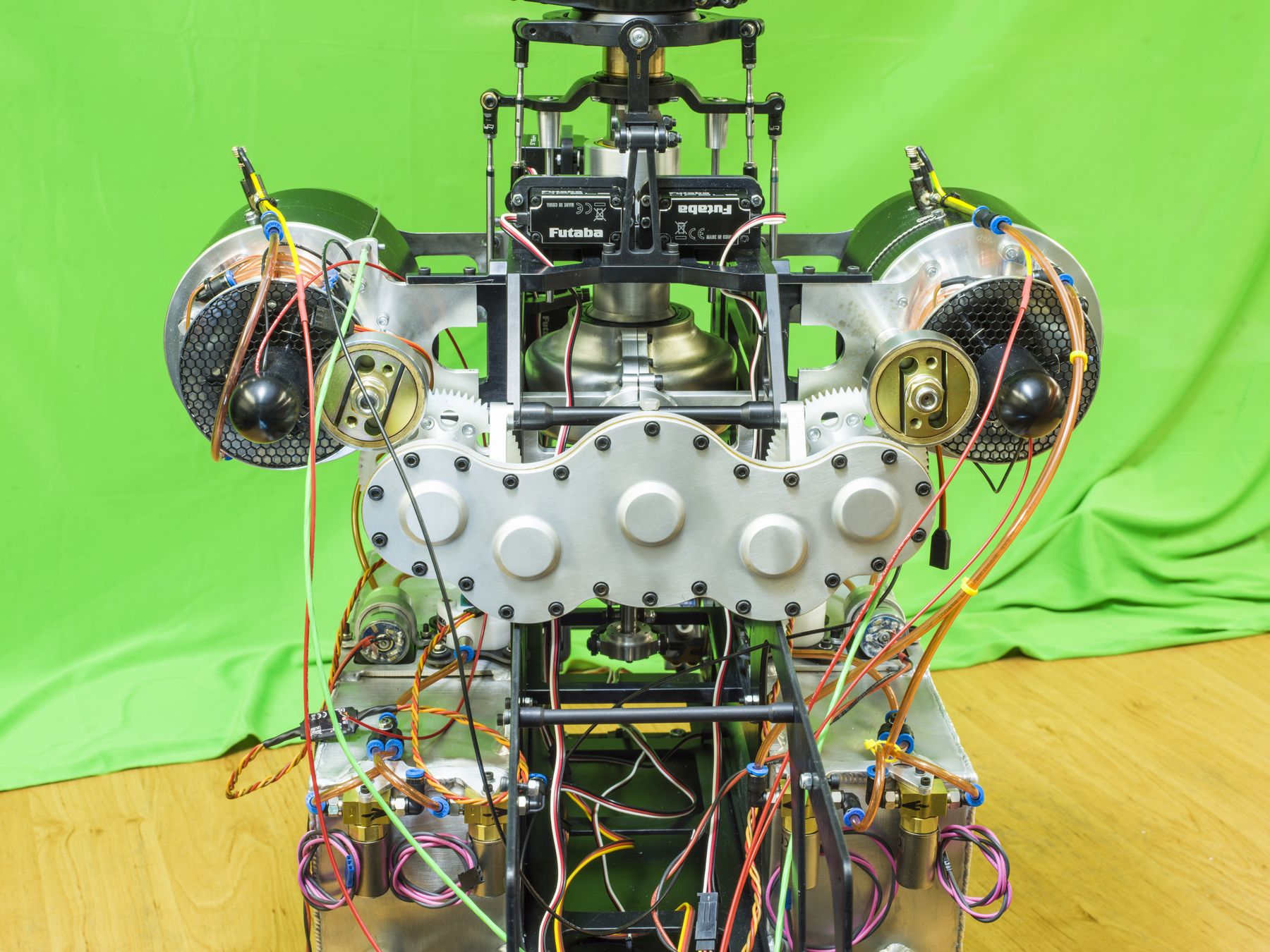 Pohon obstarávají dvě turbíny Jakadofsky 2x 6 kW při 100 000 ot./min. Otáčky rotoru 880 ot/min. Palivo kerosin Jet A1. Vše bylo podřízeno co nejnižší hmotnosti. Trup vrtulníku je vyroben z uhlíkových vláken, nosná konstrukce z vyskopevnostní Al slitiny 7075, výfuky a táhla z titanu. Rotorové hřídele nejdelší Ø20x630 je vrtaná v celé délce z materiálu 14220, cementovaná a broušená. Palubní elektronika 8,4 V, přijímač, vysílač a telemetrie od firmy Jeti. Serva od firmy Futaba HPS H700 44kg/cm a HPS A700 74 kg/cm.