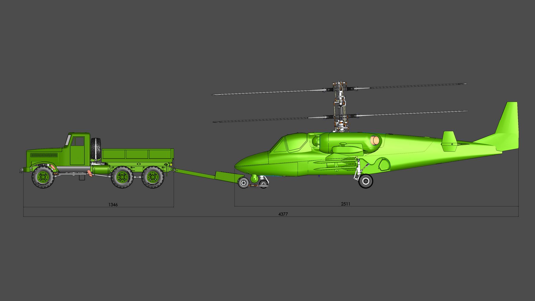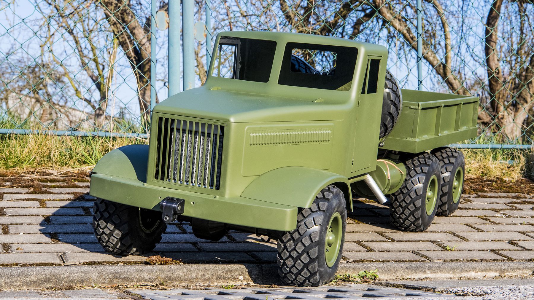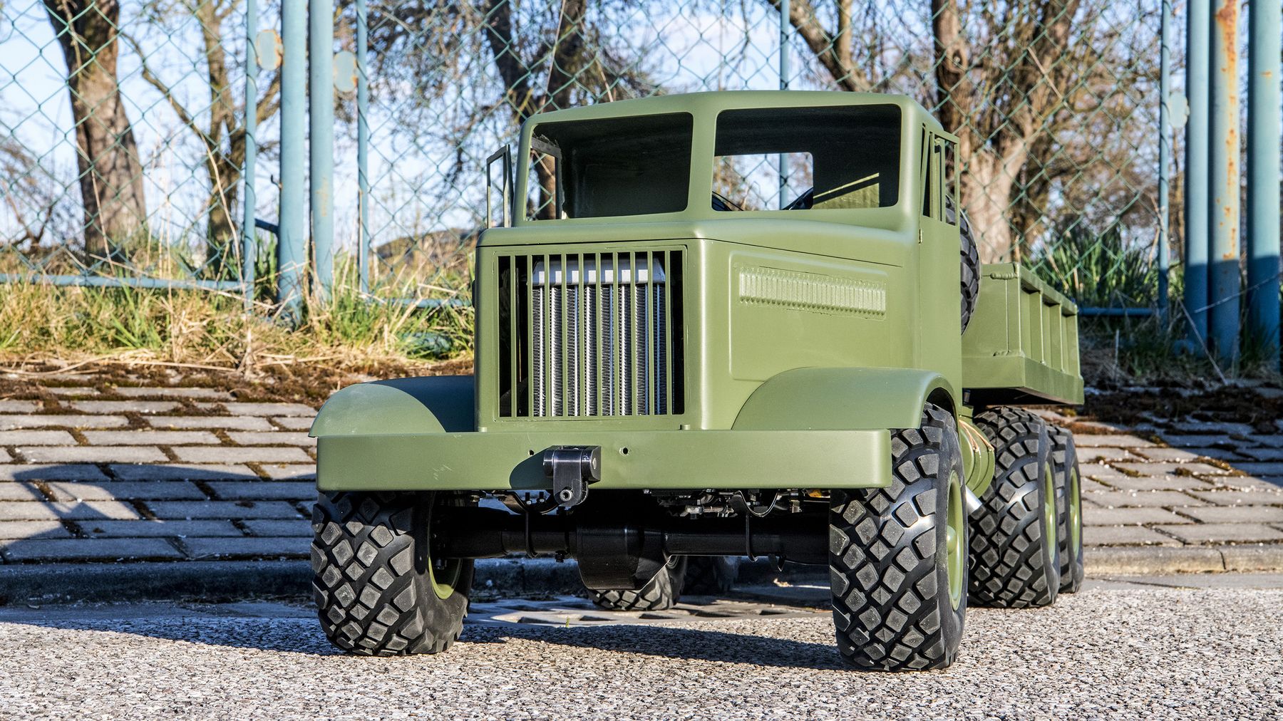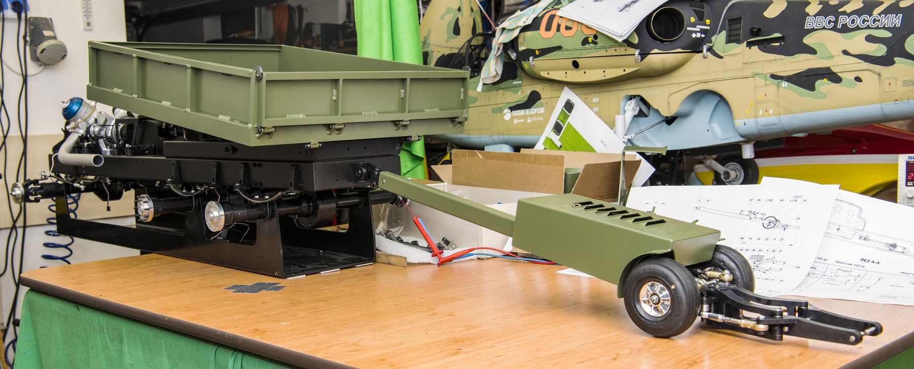 Je ruský nákladní automobil a byl vytvořen proto, aby s pomocí speciálního závěsu odtáhl vrtulník KA-52 na startovací pozici ... Model je postaven v měřítku 1 : 6. Bezdušové pneumatiky a ráfky vlastní konstrukce, uzávěrka diferenciálu na všech nápravách, třístupňová převodovka s kalenými ozubenými koly. Pohon střídavý elektromotor 6 kW, Lipo 2x6S 44 V, 5000 mAh, regulátor 80 A. Rozměry šířka 490 mm, délka 1330 mm, výška 496 mm.