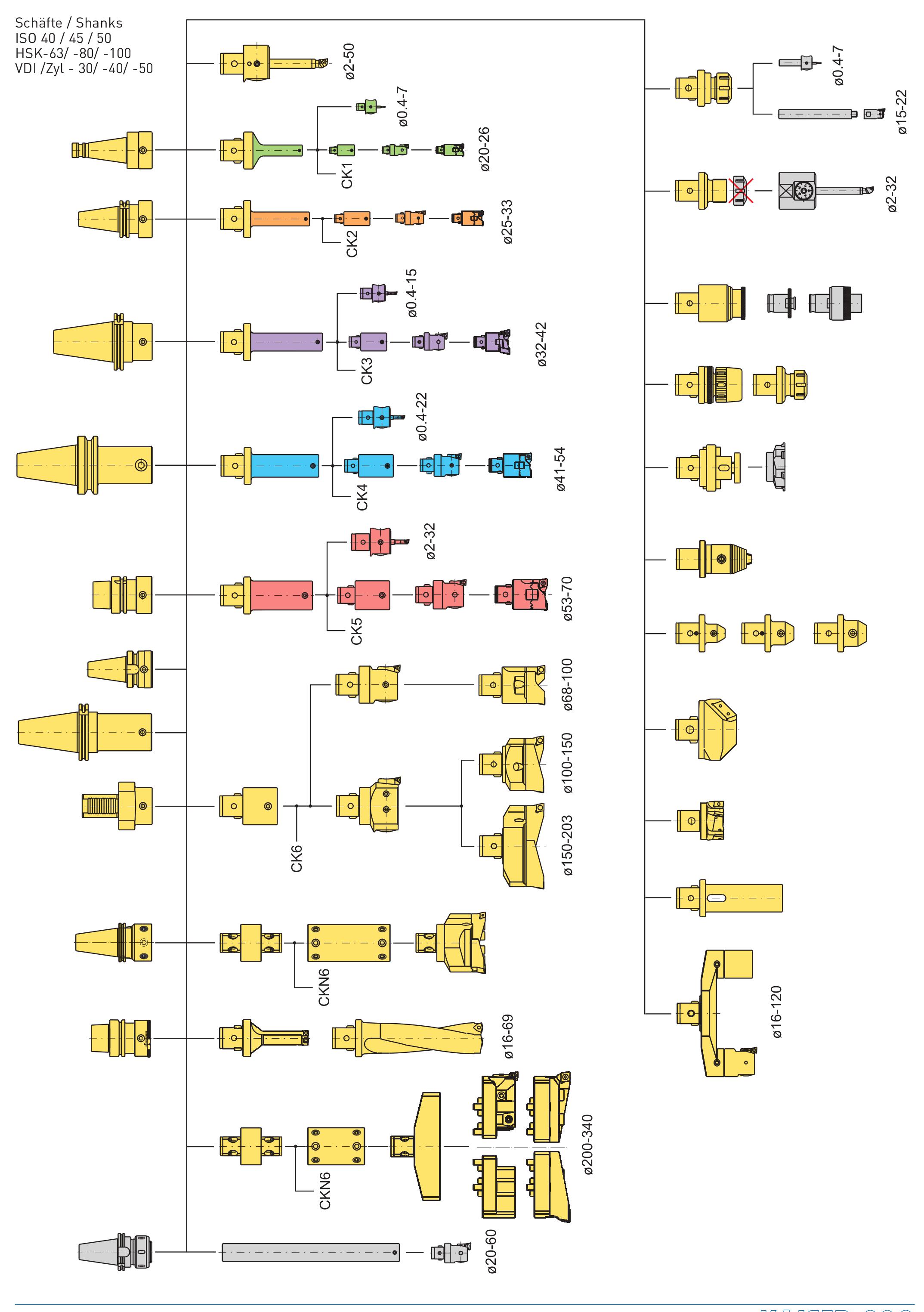 У компании «BIG KAISER» имеется запатентованная модульная система CKB/CKN, позволяющая собирать инструменты в соответствии с потребностями пользователя. Она позволяет обрабатывать отверстия в диапазоне 0,4 – 3000 мм, осуществлять процесс зенкерования отверстия от 20 до 3000 мм.