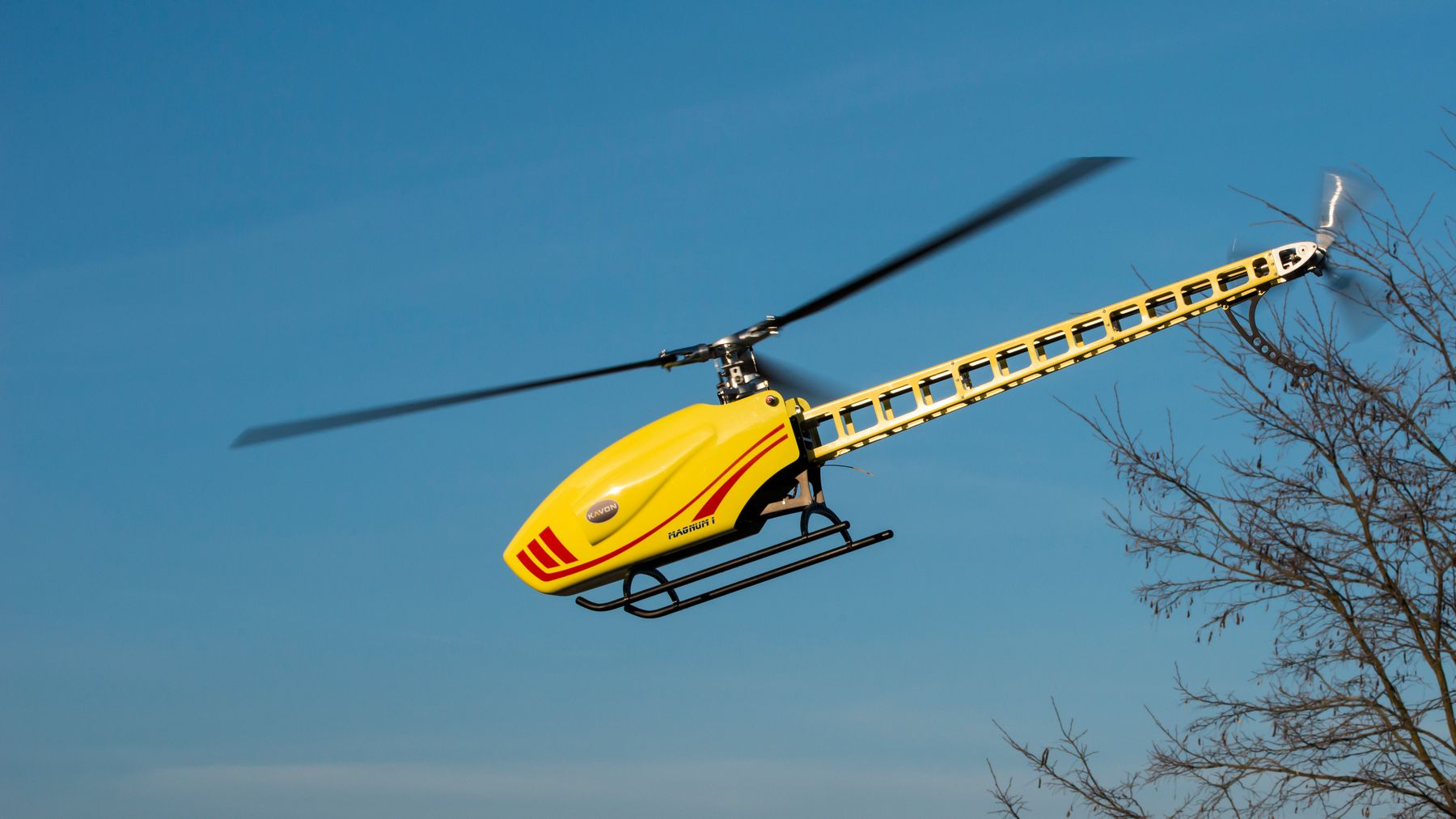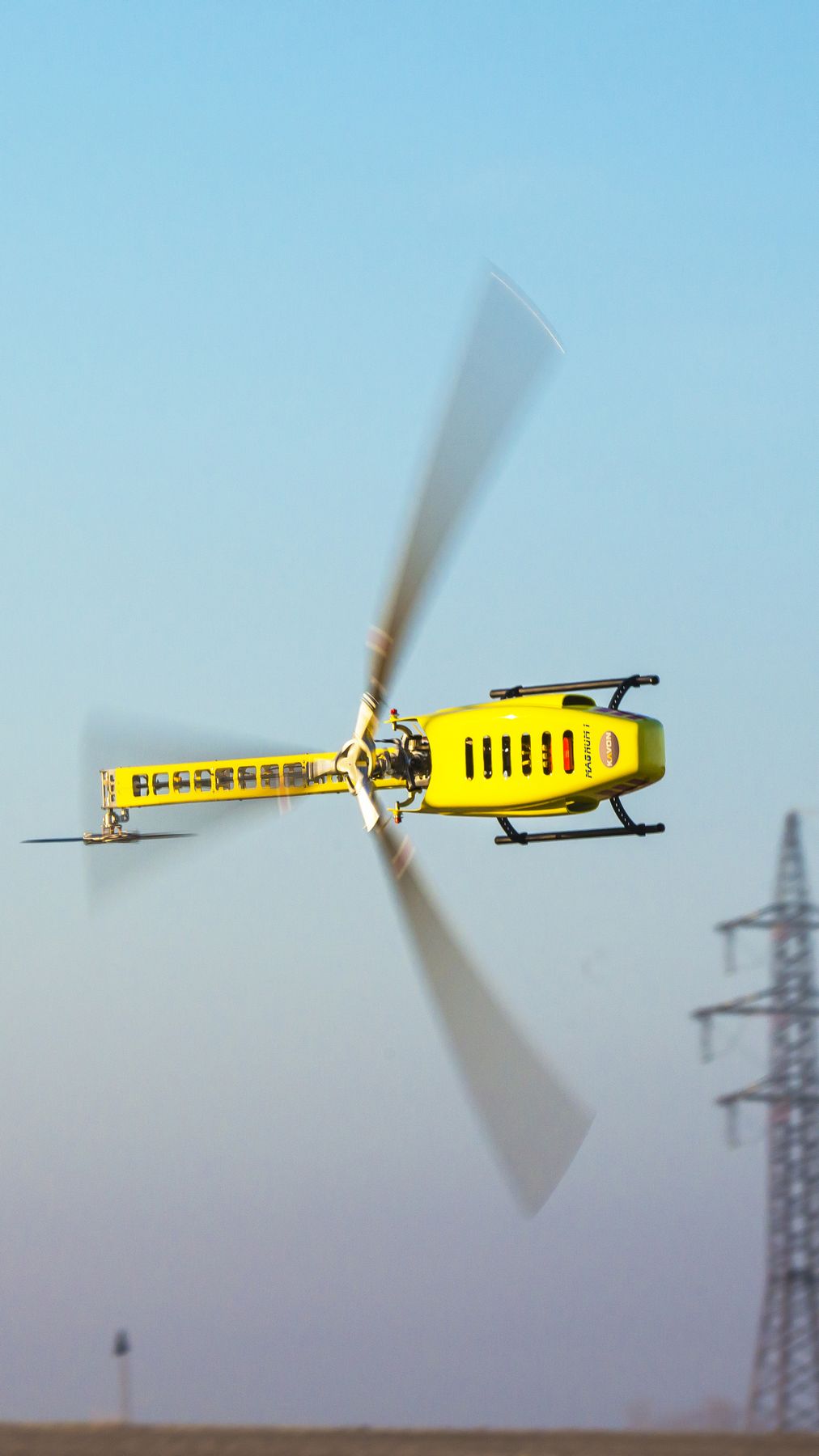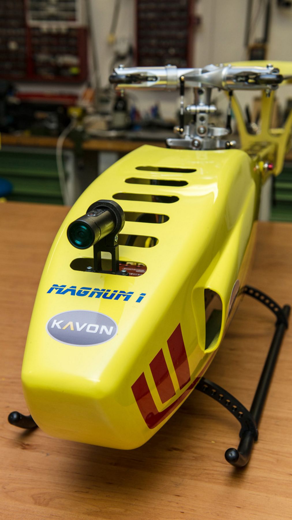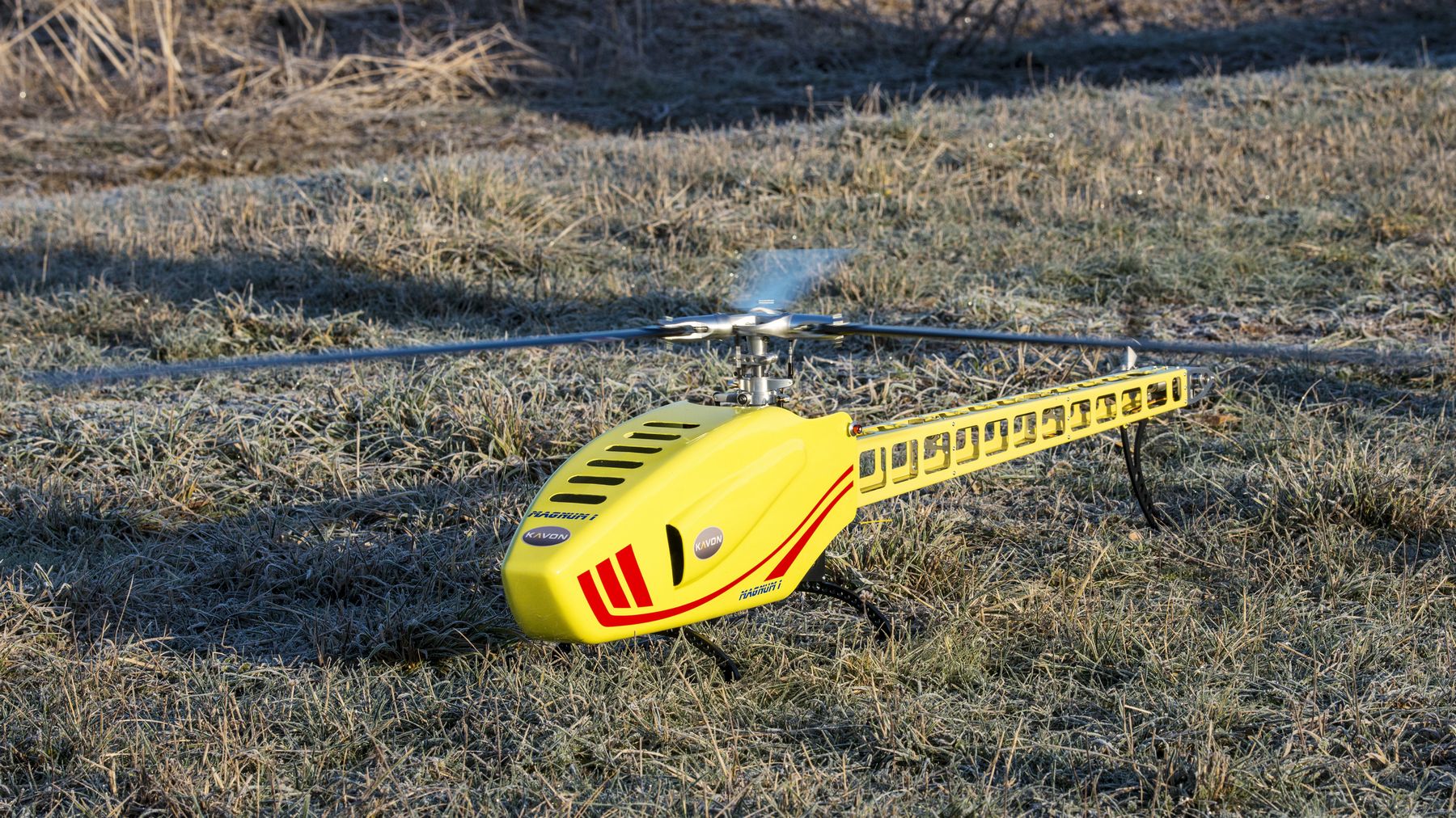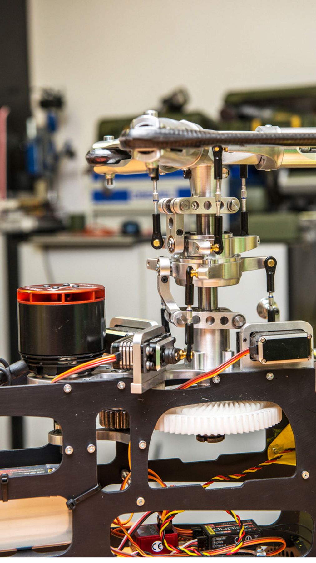 Первая собственная конструкция пилотажного вертолета с несущим винтом Ø 1820 мм, пропеллером Ø 326 мм, длиной 1610 мм, шириной 272 мм, высотой 410 мм, снаряженной массой 8,2 кг, лопастями несущего винта MS Composit, приводом двигателя XNova 8 кВт (на 5 с 13 кВт ...) Lipo 12S 44 В, регулятор 200 А