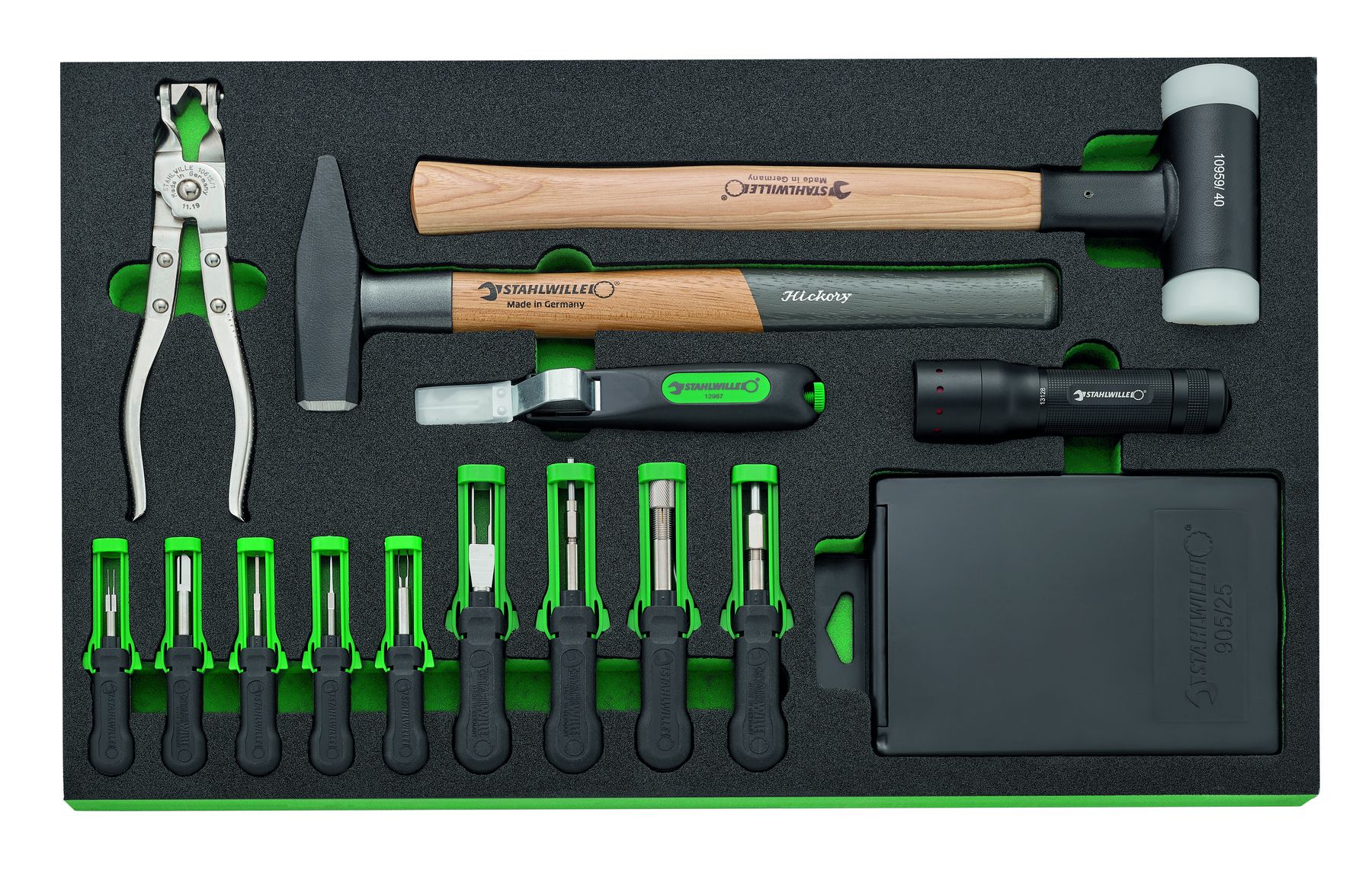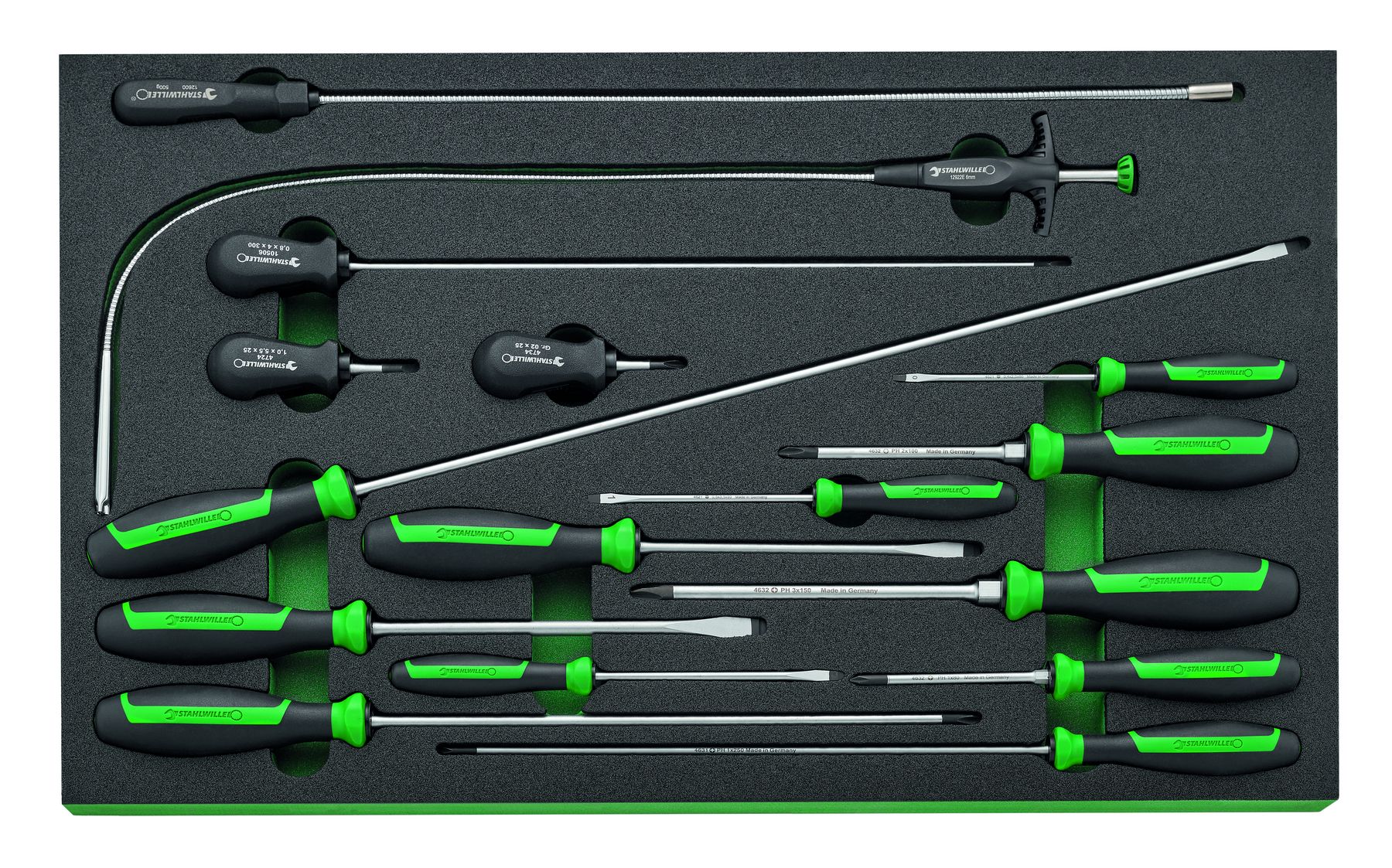 - Все ящики можно полностью извлекать. Использование стандартных вкладышей TCS компании STAHLWILLE или вариабельных делителей ящиков обеспечивает удобный выбор инструмента и его изъятие.